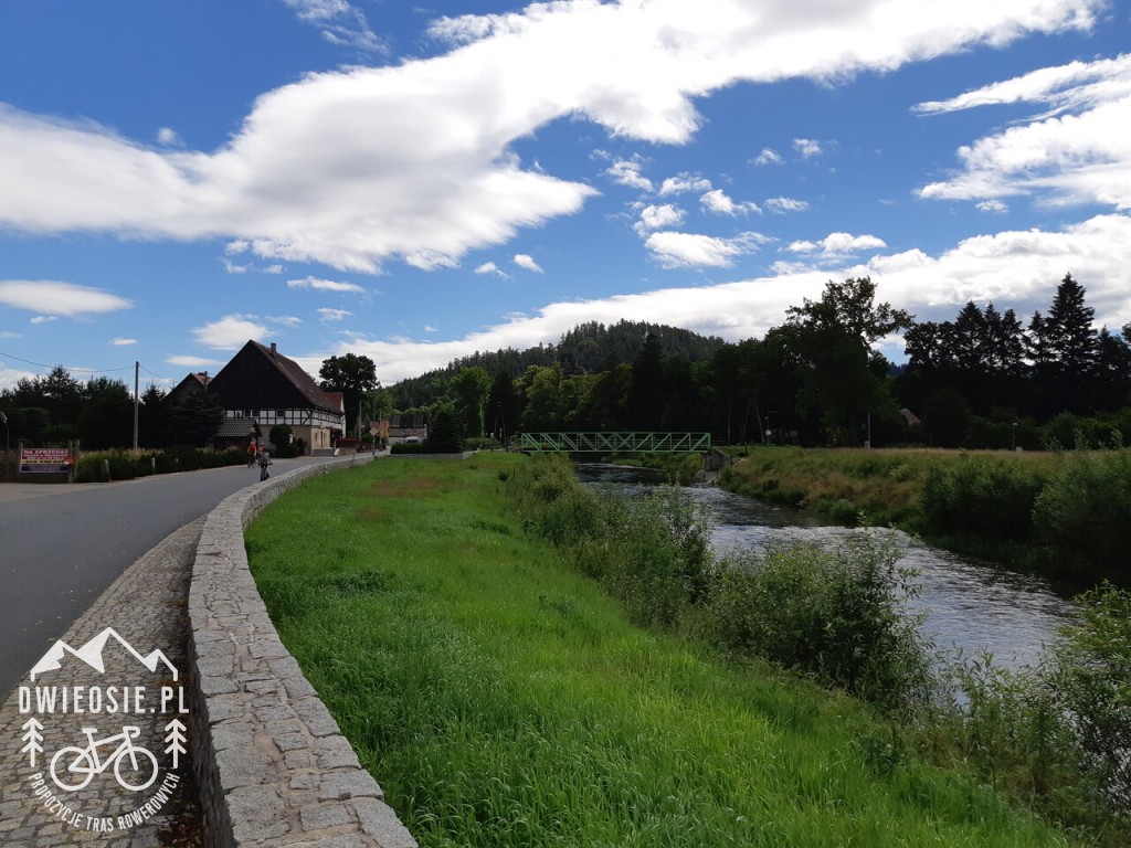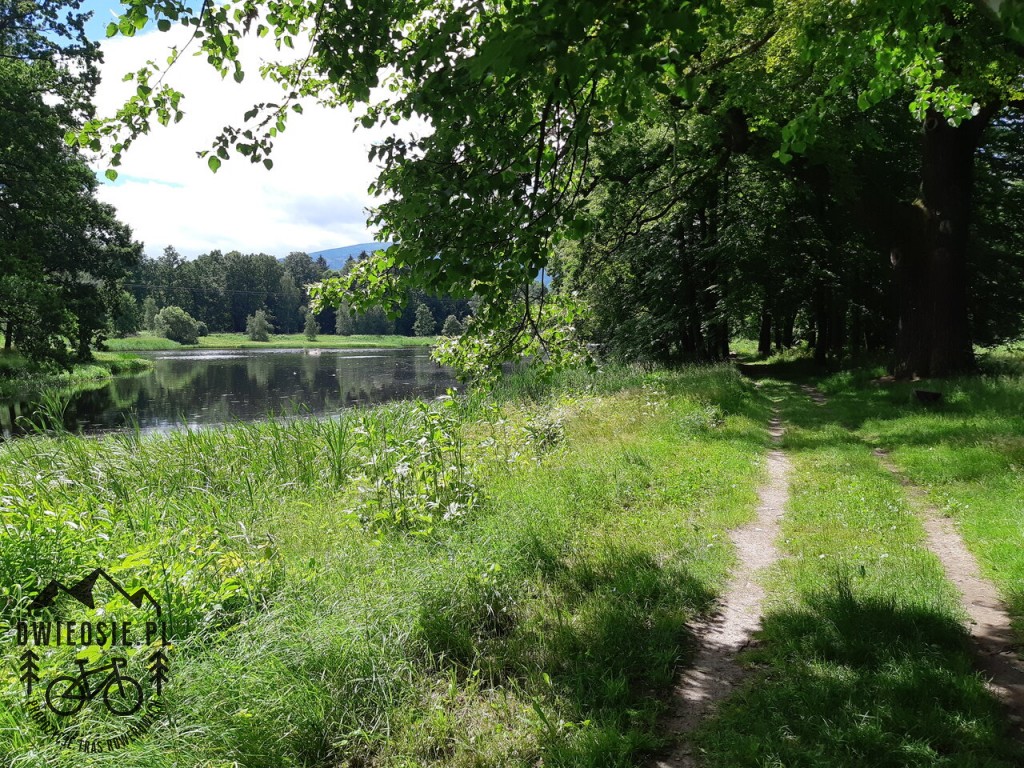 Trasa standardowo rozpoczyna się na jeleniogórskim Rynku, skąd prowadzi do Dąbrowicy. Dąbrowica to dobre miejsce na krótką przerwę nad brzegiem starej żwirowni. Przed miejscowością Bukowiec można zjechać na chwilę z asfaltu, aby wspiąć się na górę z odrestaurowaną wieżą widokową. W samej już miejscowości warto odwiedzić pałacowy park i przejść się urokliwą groblą wzdłuż stawów – obszar, który zamieszkują różne gatunki ptaków. Po przeciwnej stronie drogi znajduje się Muzeum Tajemnice Lasu, gdzie pewnie chętnie będą chciały wstąpić dzieci. Jeśli czas na to pozwala to w pobliżu znajduje się jeszcze zabytkowy Dom Ogrodnika, Ponura Kapliczka oraz Stare Opactwo.