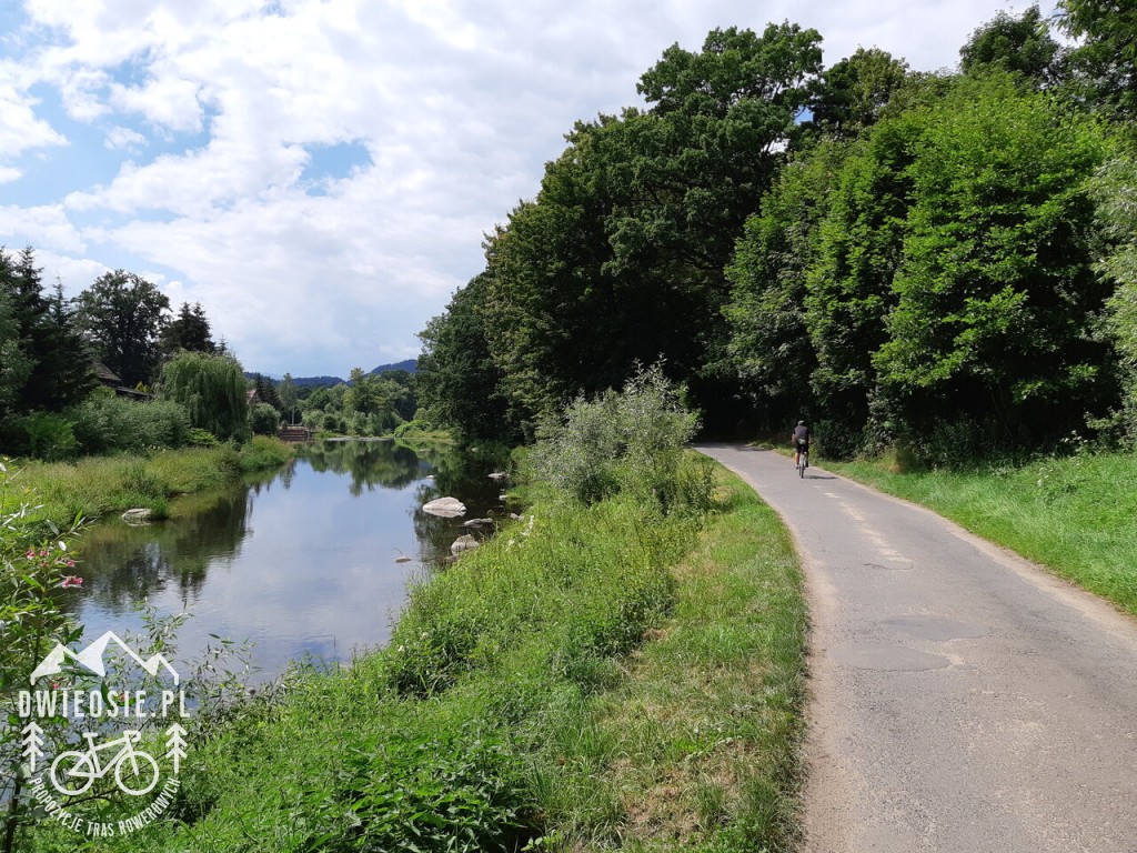 Z centrum Jeleniej Góry opisywana pętla wyprowadza wzdłuż Promenady Bobru. Za miejscowością Dziwiszów prowadzi w pobliżu ukrytych w lesie stawów hodowlanych. Dalej na trasie rozpoczyna się jeden z dwóch dłuższych podjazdów – do górnej części miejscowości Komarno, skąd niedużymi już pagórkami biegnie do Radomierza. Tu znajduje się wieża widokowa, z której rozpościera się niczym nieograniczony widok na panoramę Karkonoszy. Następną miejscowością na trasie są Janowice Wielkie, gdzie istnieje możliwość skrócenia pętli, ale niestety z pominięciem tytułowej miejscowości. Zaoszczędzić w ten sposób można kilkanaście kilometrów drogi oraz ponad sto metrów przewyższeń. Tych jednak co wybiorą pełną wersję tej wycieczki czeka jeszcze jeden, tym razem dość stromy podjazd bezpośrednio przed Miedzianką. Nagrodą natomiast będzie możliwość odbycia historycznego spaceru po pozostałościach miasteczka oraz poznania interesującej tajemnicy jego zniknięcia. Prowadzą po nim tablice informacyjne rozmieszczone w kilku punktach miejscowości. Miedzianka powoli na nowo budzi się do życia i turystów przyciąga niedawno wybudowanym małym, klimatycznym browarem z częścią restauracyjną. Droga powrotna do Jeleniej Góry przebiegać będzie wzdłuż szlaku ER-6 z możliwością obejrzenia ruin pałacu w Bobrowie oraz odwiedzenia pałacu Wojanów.