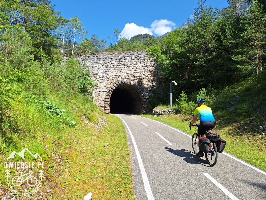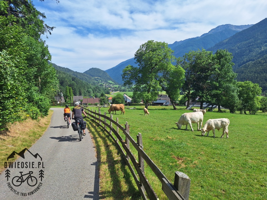 Oficjalnie szlak Alpe Adria rozpoczyna się w centrum Salzburga, a kończy w Grado. Opisana poniżej propozycja startuje na peryferiach pierwszego z miast, ale wydłużona została o dodatkowe 50 km – aż do Triestu. Dlaczego? O tym w dalszej części tekstu, ale po kolei. Samochód najwygodniej zostawić na parkingu na południe od Salzburga (na wysokości miejscowości Glasenbach). Parking niestety jest płatny, ale jego dużą zaletą jest położenie tuż przy szlaku Alpe Adria. Początkowy niespełna 80 kilometrowy odcinek trasy wyznacza oś rzeki Salzach. I tak pierwsze kilka kilometrów szlaku prowadzi szutrową ścieżką wzdłuż linii brzegowej wspomnianej rzeki do Hallein – miejscowości, w której powstała kolęda “Cicha Noc” (“Stille Nacht”), i gdzie znajduje się tematyczne muzeum. Dalej trasa biegnie asfaltową drogą przez pagórkowaty, rolniczo-leśny teren do Golling an der Salzach. Zaraz za nim, a dokładnie za niewielką przełęczą Lueg, szlak wiedzie lokalną szosą aż do Werfen. Po drodze trudno nie dostrzec twierdzy Hohenwerfen, górującej nad okolicą. Kolejny odcinek to szutrowa ścieżka biegnąca brzegiem rzeki, przez znaną wszystkim fanom skoków narciarskich, Bischofshofen (tu warto zajrzeć pod skocznię) do Sankt Johann in Pongau. Dalej szlak asfaltową drogą naprzemiennie wspina się i opada przez pagórkowaty teren w okolice miejscowości Klamm, gdzie kończy się już przygoda z rzeką Salzach. W tym miejscu trasa odbija w dolinę Gastein, pokonując najdłuższy tunel na całym szlaku – przejezdny na rowerze. W dolinie trasa biegnie przez lokalne miejscowości w większości rowerową ścieżką. W końcowej jej części w Bad Gastein rozpoczyna się dość żmudny podjazd do górnej części miejscowości. Tu mieści się jedyny tunel na całym szlaku Alpe Adria, którego nie można pokonać pedałując i należy skorzystać z przeprawy przez górę koleją. Po drugiej stronie, w Mallnitz, rozpoczyna się alpejski zjazd serpentynami – ponad 500 metrów w dół do Obervellach. Na tym odcinku można naprawdę mocno rozgrzać hamulce ;). Dalszy odcinek prowadzi wzdłuż rzeki Möll, a następnie rzeką jaką zasila – Drawą. Tu już brak większych przewyższeń a dominującym krajobrazem są pola i łąki. Największym miastem na tym fragmencie jest miejscowość Spittal an der Drau nieopodal którego znajduje się sporych rozmiarów jezioro z rekreacyjną infrastrukturą. Dopiero w miejscowości Villach szlak pozostawia rzekę Drawę prowadząc wzdłuż jej prawego dopływu – rzeką Gail. Fragment ten przebiega w większości szutrami, a bliskość rzeki zachęca do chwili relaksu przez zamoczenia choćby w niej stóp. Końcowy odcinek po stronie austriackiej prowadzi przez lokalne miejscowości, delikatnie wznosząc się pod górę. Przekroczenie granicy z Włochami akcentuje krótki, lecz stromy podjazd. Kilka kilometrów dalej rozpoczyna się jeden z najbardziej malowniczych fragmentów całej trasy – poprowadzony śladem dawnej kolei Pontebbana. Początkowo to długi i leniwy zjazd w dół doliny, dalej – niemal płaski odcinek z niezliczoną ilością tuneli, mostów i dawnych stacji kolejowych, z których niektóre pełnią funkcję klimatycznych kafejek dla rowerzystów. Fragment ten kończy się w okolicach miejscowości Ospedaletto, a wraz z nim powoli alpejski klimat. Pożegnanie z górami następuje w miejscowości Gemona, gdzie po raz ostatni można się wspiąć do centrum miasta. Od tego miejsca trasa nabiera równinny charakter. Dalej, w większości lokalnymi drogami szlak prowadzi na przedmieścia Udine. W opisanym tu wariancie trochę na skróty (względem oficjalnego przebiegu Alpe Adria) trasa kieruje do centrum, które pełne zabytków tętni pełnią życia i włoskim klimatem. Zaraz za miastem szlak biegnie głównie szutrami do miasta twierdzy Palmanova – zbudowanego na planie dziewięcioramiennej gwiazdy i otoczonego murami. Stąd już niedaleko do Grado – oficjalnego końca trasy, położonego na wyspie nad Adriatykiem. Opisana tu propozycja prowadzi jednak dalej przez Monfalcone do Triestu. Monfalcone, podobnie jak Grado, leży nad samym morzem i może być dobrym miejscem na zasłużony odpoczynek na plaży. Ostatni odcinek do Triestu biegnie niestety szosą wraz z umiarkowanym ruchem samochodowym. Wynagradzają to jednak przepiękne widoki na Adriatyk.