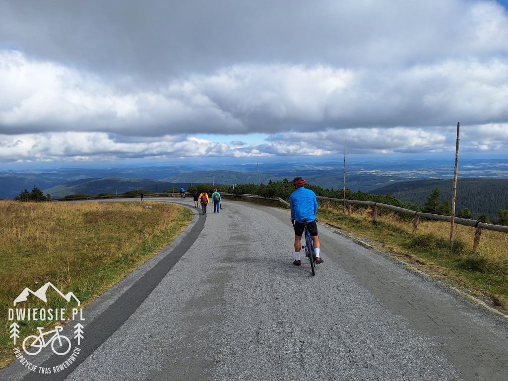 Opisywana pętla rozpoczyna się w miejscowości Město Albrechtice, gdzie bez trudu można znaleźć miejsce do zaparkowania samochodu. Stąd trasa prowadzi wzdłuż rzeki Opavice aż do Heřmanovic. Dla użytkowników rowerów szosowych najlepszym wyborem będzie na tym odcinku droga nr 453, natomiast osoby na rowerach z szerszymi oponami mogą urozmaicić przejazd, korzystając z równoległych, lokalnych dróg. Kolejny fragment, z Heřmanovic do Vrbna pod Pradědem, wygląda bardzo podobnie. Miłośnikom asfaltu polecana jest szosa nr 445, a poszukiwacze przygód mogą z niej odbić i – zgodnie z załączonym śladem GPX – zjechać do doliny rzeki Černá Opava, co wiąże się z przeprawą na jej drugi brzeg. W Vrbnie pod Pradědem rozpoczyna się właściwy podjazd, który kończy się dopiero na szczycie Pradziada. Początkowo jest on łagodny, jednak z każdym kilometrem staje się coraz bardziej wymagający. Mniej więcej w połowie trasy znajduje się pięknie odrestaurowany uzdrowiskowy kurort Karlova Studánka – idealne miejsce na krótki odpoczynek lub posiłek. Tuż za Karlovą Studánką, na rozdrożu Hvězda, zaczyna się sześciokilometrowy odcinek prowadzący do przełęczy Ovčárna, na którym ruch regulowany jest sygnalizacją świetlną. Ruch samochodowy jest tu ograniczony, a pierwszeństwo ma transport publiczny. Dalej, z Ovčárni na sam szczyt Pradziada, poruszać mogą się już wyłącznie piesi turyści i rowerzyści. Widoki z samego szczytu w pełni wynagradzają wysiłek włożony w podjazd. Zjazd w dół dostarcza wiele emocji, ale należy pamiętać o turystach pieszych często poruszających się całę szerokością drogi, a na kolejnym odcinku o samochodach zwłaszcza tych jadących w przeciwnym kierunku. Mijanie autobusów na wąskich odcinkach może wymagać wyhamowania prędkości niemalże do zera. Odcinek szosy z Vrbna pod Pradědem do Karlovic jest wprawdzie dość ruchliwy, ale na szczęście krótki. W Karlovicach trasa skręca na lokalną drogę i bardzo malowniczo, przez pagórkowaty teren, prowadzi z powrotem do Města Albrechtice, zamykając pętlę.